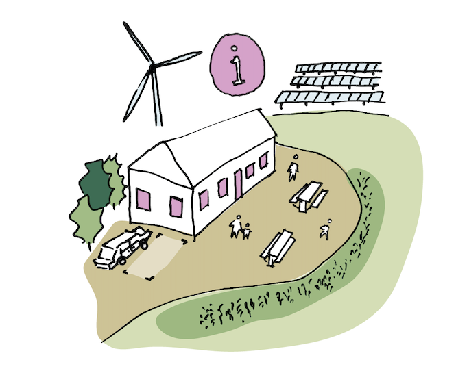 Der etableres et informationscenter, hvor besøgende kan blive klogere på energiproduktion, naturen i området og samspillet mellem projekt og landskab.